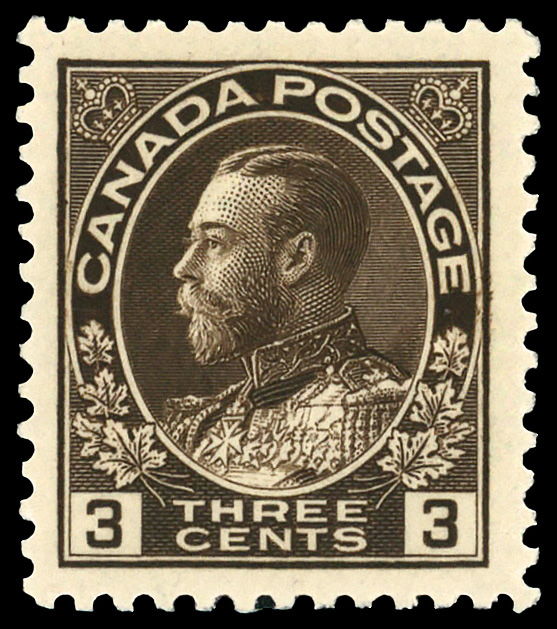 5711 nh 108c image1918, King George V "Admiral", 3¢ brown, dry printing (Scott 108c), wide and well-balanced margins, intense shade and impression, o.g., never hinged, Extremely Fine and choice.