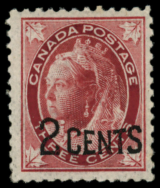 5692 nh 87 image1899, Queen Victoria "Maple Leaf", 2¢ on 3¢ carmine (Scott 87), o.g., never hinged, Fine to Very Fine.