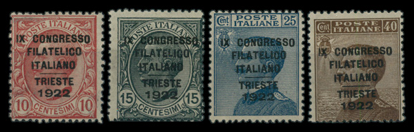 5913 O 142A-142D image1922, 9th Italian Philatelic Congress, Trieste (Scott 142A-142D), complete set of singles, Fine to Very Fine.