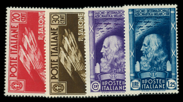 5920 nh 345-348 image1935, International Aeronautical Salon, Milan complete (Scott 345-348), complete set of single, o.g., never hinged, Fine to Very Fine.