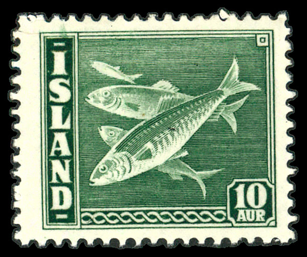 5886 nh 221 image1940, Fish definitive, 10a green (Scott 221), single, o.g., never hinged, Fine to Very Fine.