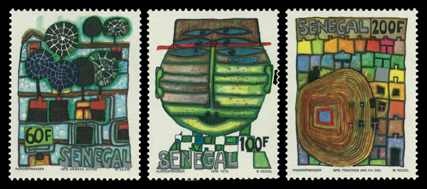 6059 nh 512-514 image1979 Painting by Friedensreich Hundertwasser complete (Scott 512-514), complete set of singles, o.g., never hinged, Fine to Very Fine.