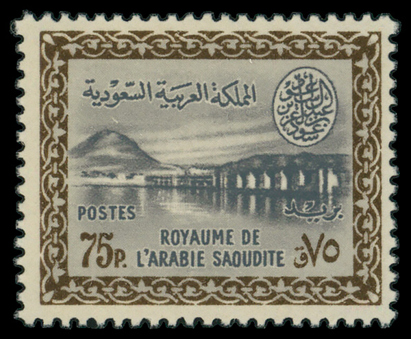 6045 nh 224 image1961, 75pi Wadi Hanifa Dam, Unwatermarked, King Saud Cartouche (Scott 224), single, o.g., never hinged, Fine to Very Fine.
