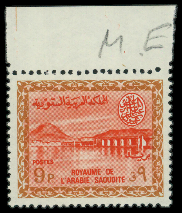 6050 nh 294 image1968, 9pi Wadi Hanifa Dam Redrawn, King Saud Cartouche (Scott 294), single, o.g., never hinged, Fine to Very Fine.