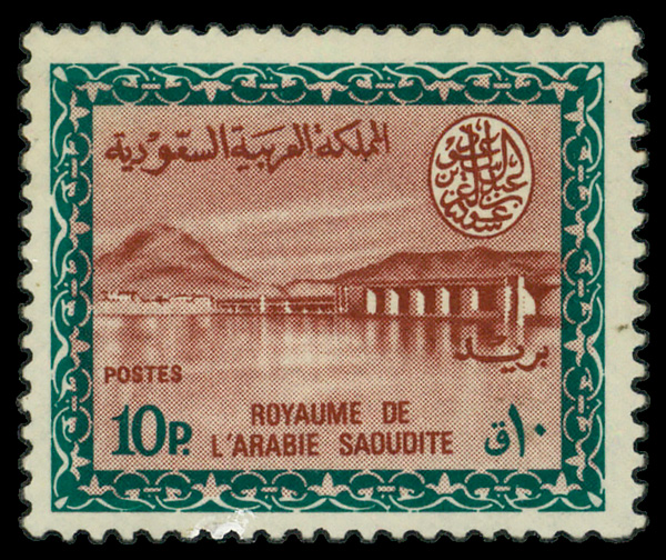 6051 nh 295 image1966, 10pi Wadi Hanifa Dam Redrawn, King Saud Cartouche (Scott 295), single, o.g., never hinged, Fine to Very Fine.