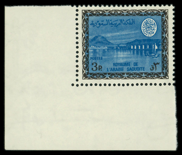 6052 nh 463 image1969, Wadi Hanifa Dam, Watermarked, King Faisal Cartouche, 3pi (Scott 463), single, o.g., never hinged, Fine to Very Fine.