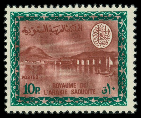 6056 nh 470 image1968, Wadi Hanifa Dam, Watermarked, King Faisal Cartouche, 10pi (Scott 470), single, o.g., never hinged, Fine to Very Fine.