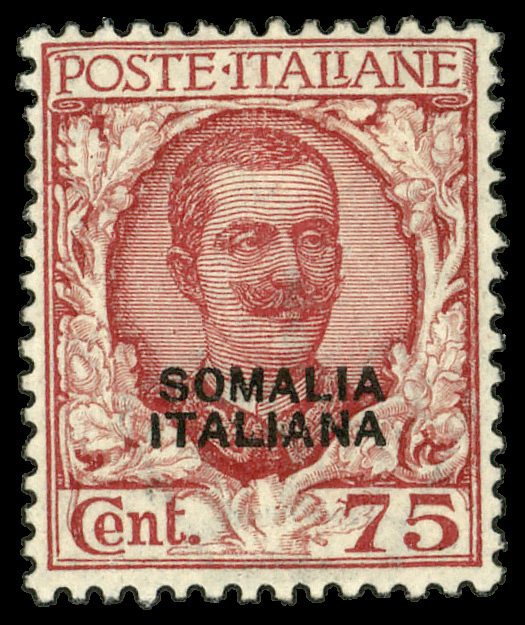 6060 og 90 image1926-1930, Victor Emmanuel III 75c dark red & rose overprinted (Scott 90), single, o.g., hinged, Fine to Very Fine.