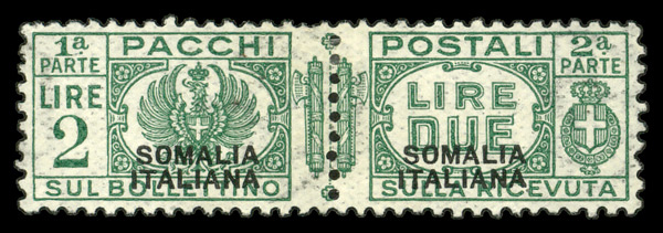 6066 og Q31 image1926, Italian Eagle and Arms 2l green (Scott Q31), single (entire pair), o.g., hinged, Fine to Very Fine.