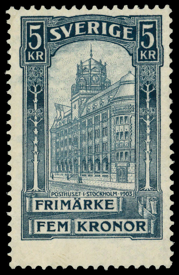 6078 og 66 image1903, 5kr Stockholm Post Office (Scott 66), o.g., very lightly hinged, Fine to Very Fine.