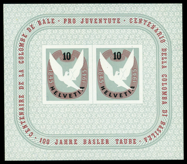 6106 nh B144 image1945, Basel Dove souvenir sheet (Scott B144), o.g., never hinged, Extremely Fine.