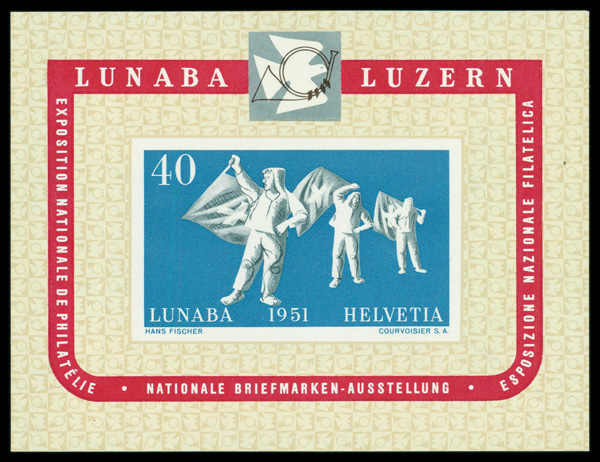 6098 nhbl 352a image1955, Lausanne Philatelic Exhibition souvenir sheet (Scott 352a), souvenir sheet of 2, o.g., never hinged, Fine to Very Fine.