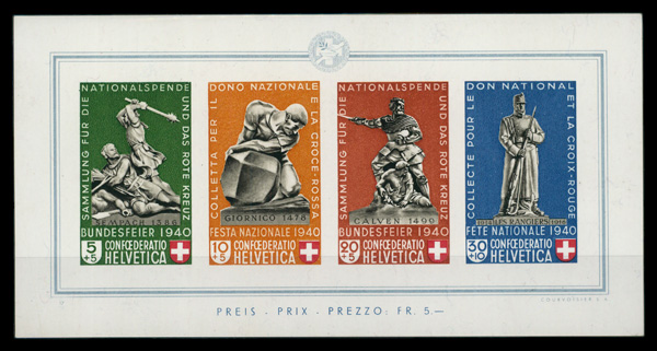 6103 O B105 image1940, Pro Patria souvenir sheet (Scott B105), Extremely Fine.