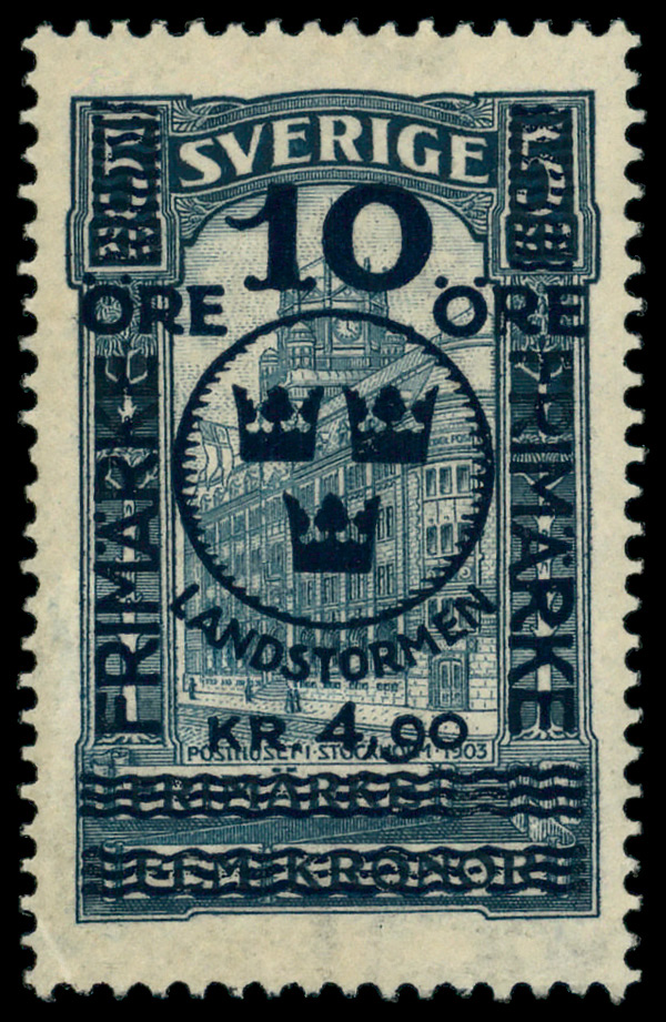 6085 nh B11 image1916, 10ö + 4.90kr Landstorm overprint on 5kr G.P.O. (Scott B11), o.g., never hinged, Very Fine to Extremely Fine.