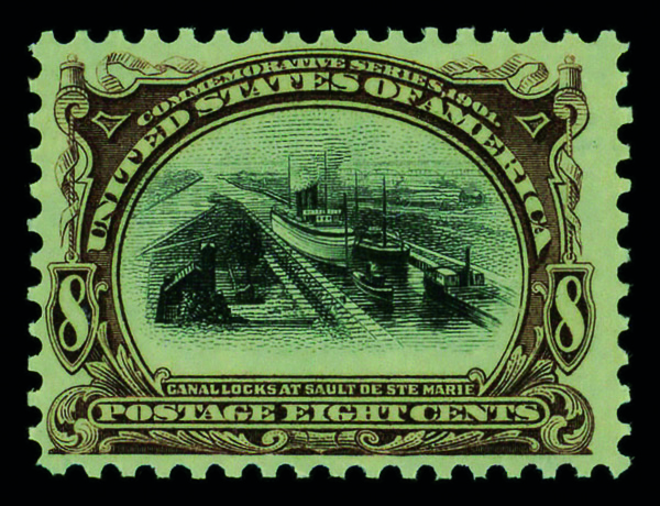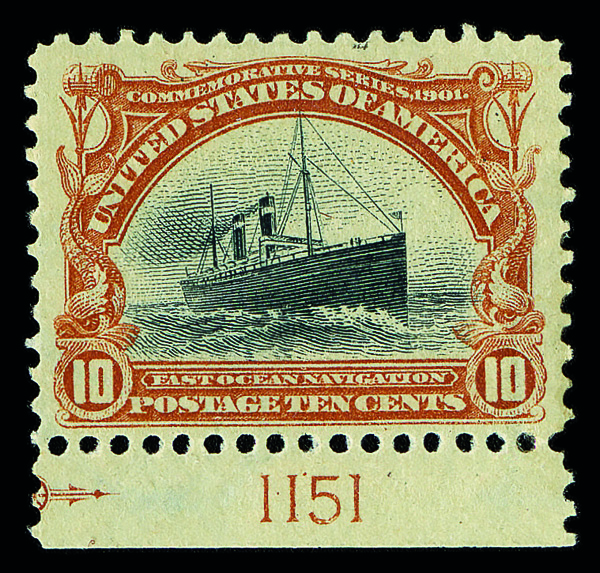 5106 ng 299 image1901, 10¢ Pan-American (Scott 299), Near-flawless centering, regummed, Extremely Fine.