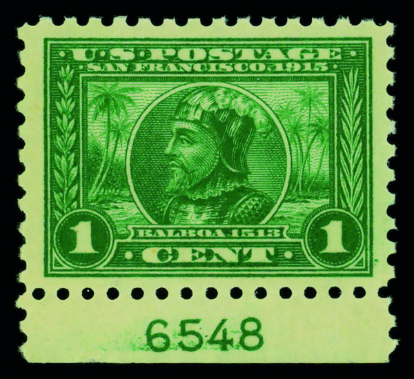 5162 nh 401 image1914, 1¢ Panama-Pacific, perf. 10 (Scott 401), plate number single, o.g., never hinged, Very Fine to Extremely Fine.