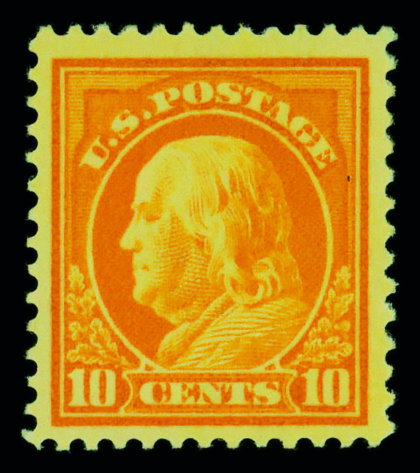 5171 og 416 image1912, 10¢ orange yellow, S.L. watermark, perf. 12 (Scott 416), o.g., lightly hinged, Fine to Very Fine.