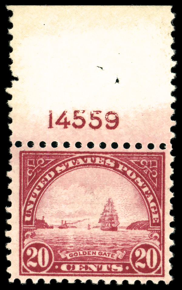 5253 nh 567 image1923, 20¢ Golden Gate (Scott 567), plate number single, o.g., never hinged, Very Fine.