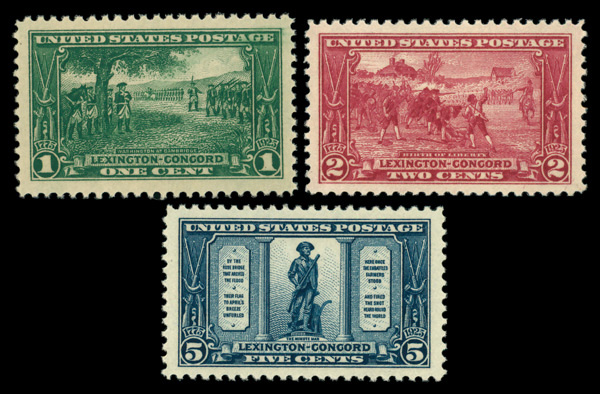 5269 nh 617-619 image1925, Lexington-Concord complete (Scott 617-619), set of 3, o.g., never hinged, Extremely Fine.