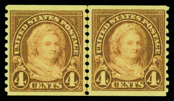 5265 nh 601 image1923, 4¢ Martha Washington, rotary press coil, perf. 10 vertically (Scott 601), joint line pair, o.g., never hinged, Fine to Very Fine.