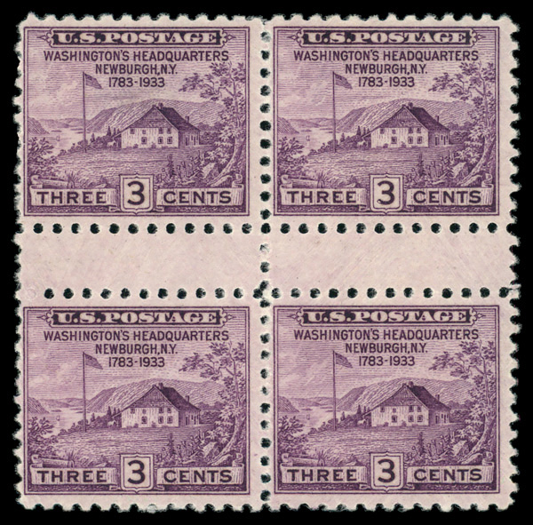 5291 ngbl 752 image1935, 3¢ Washington's Peace Proclamation, imperf. (Scott 752), block of 4 with horizontal gutter, attractive example with bright color on clean paper, without gum as issued, Very Fine. (Image) Suggested Bid $12