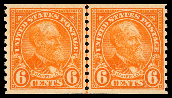 5289 og 723 image1932, 6¢ Garfield, rotary press printing, horizontal coil (Scott 723), joint line pair, o.g., hinged, Very Fine.