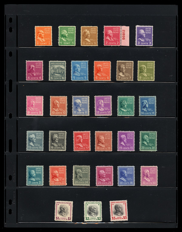 5293 nh 803-834 image1938, Presidential Issue, ½¢ to $5 complete (Scott 803-834), set of 32, o.g., never hinged (4½¢ LH), Fine to Very Fine.