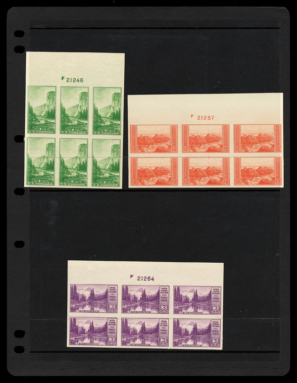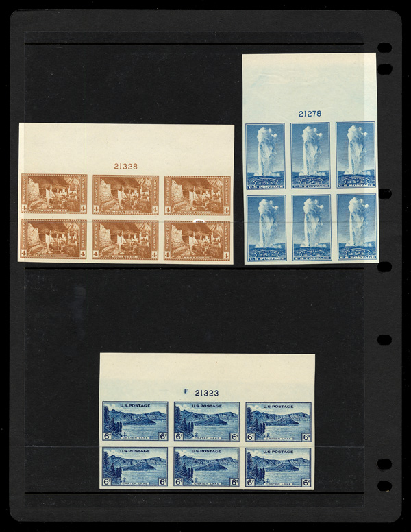 5292 ngbl 756-765 image1935, National Parks, imperf., 1¢ to 10¢ complete (Scott 756-765), set of 10, plate blocks of 6, without gum as issued, Very Fine.