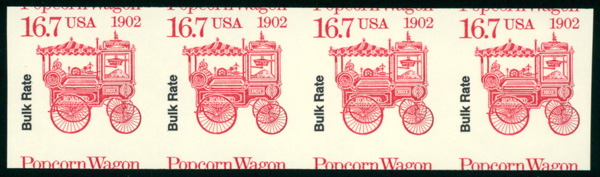 5338 nh 2261a image1988, Transportation Issue, 16.7¢ Popcorn Wagon, imperf. pair (Scott 2261a), miscut as is usual, o.g., never hinged, Extremely Fine, only 100 pairs issued.