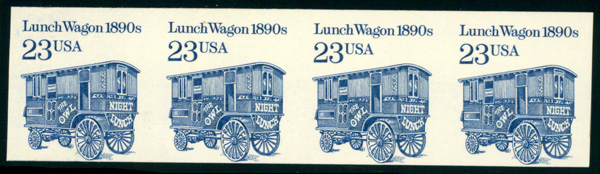 5342 nh 2464b image1991, Transportation Issue, 23¢ Lunch Wagon, prephosphored coated paper, imperf. pair (Scott 2464b), o.g., never hinged, Fine.