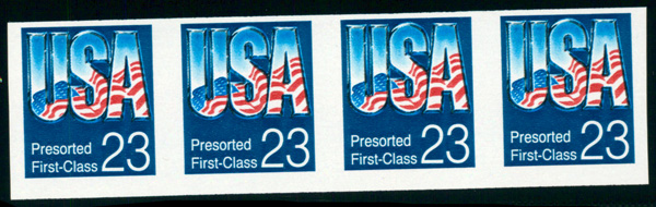 5345 nh 2607c image1992, 23¢ "USA" & "Presorted First-Class", imperf. pair (Scott 2607c), "First Class" 9 mm long, o.g., never hinged, Fine to Very Fine.