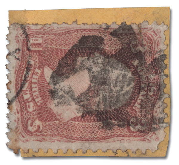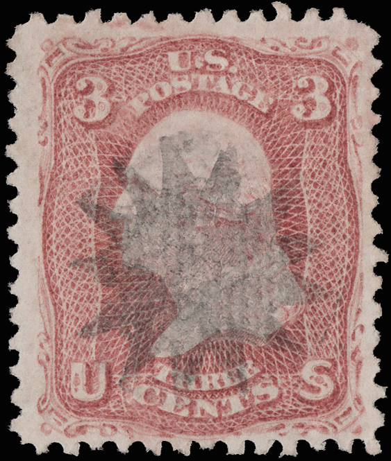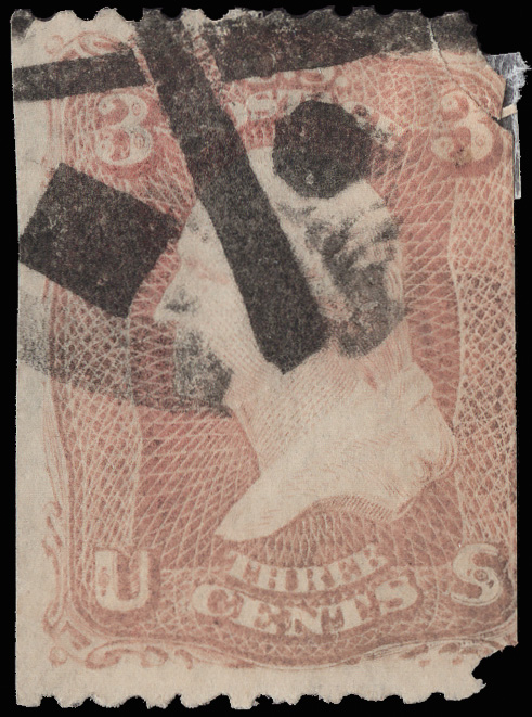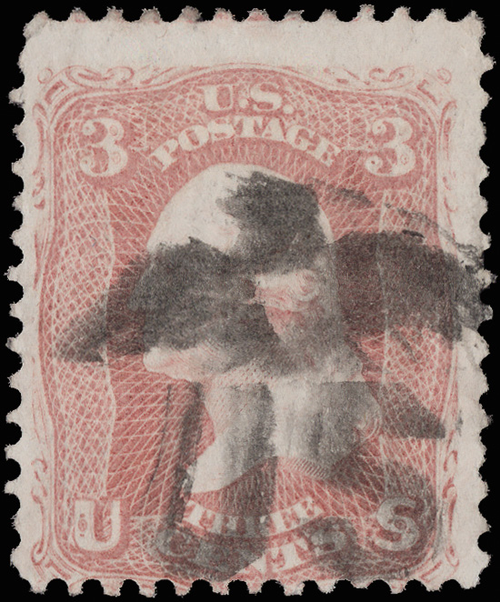 "Devil's Mask" of Philadelphia Pa.(?), ful, upright strike on a 3¢ green (147); tiny tear at the lower left,
