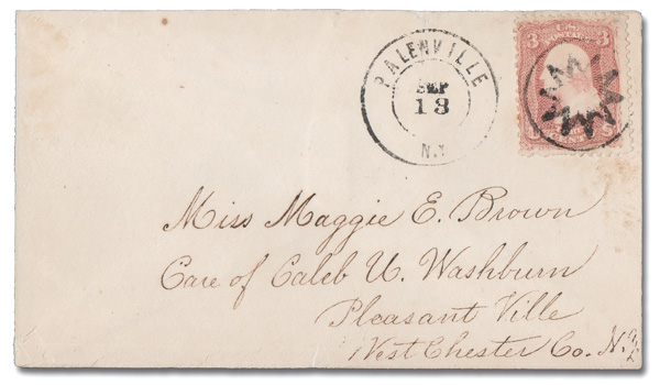 3¢ rose (65) alongside a Sep 18 Palenville c.d.s. on a small cover to Pleasant Ville, N.Y. (Image) (Image2)