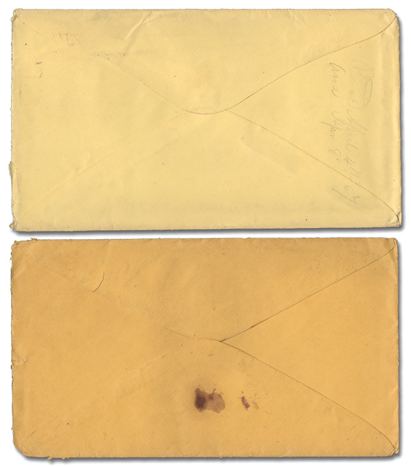 different states of wear), each an excellent strike tying a 3¢ rose (65) beside a Macon c.d.s. on a cover to the same addressee in Norwich, Ct.; one of the two with two stikes (front & back) of an American Mission'y Assoc'n, Macon,