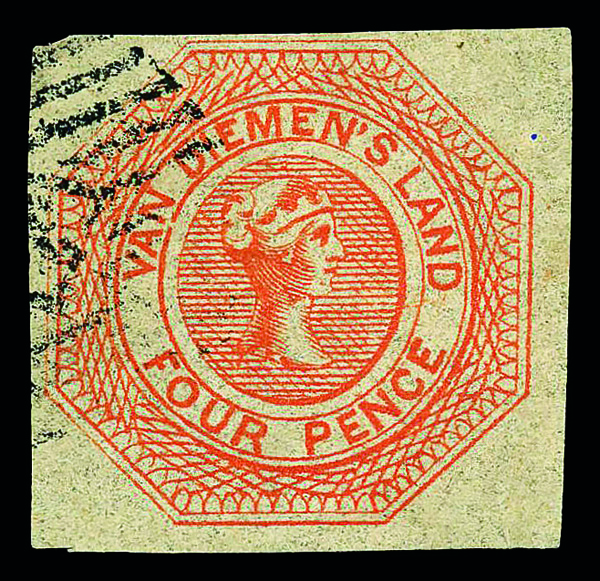7608 O 2 image1853, "Van Diemen's Land", 4d red orange, plate I, 2nd state (Scott 2), single, Fine to Very Fine.