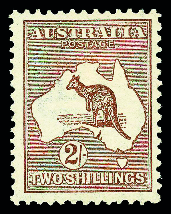 7615 og 52 image1916, Kangaroo and Map, 2s brown (Scott 52), 3rd watermark, single, o.g., lightly hinged, Fine to Very Fine.