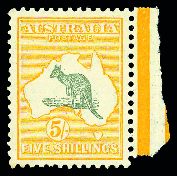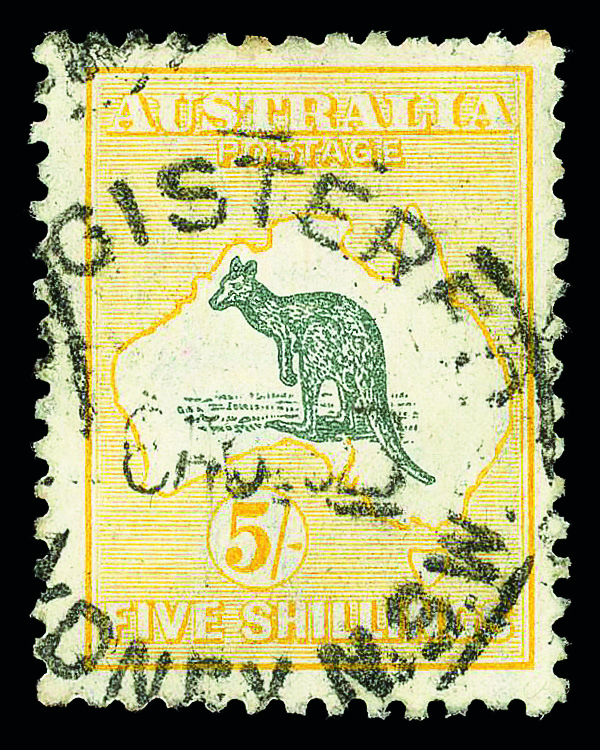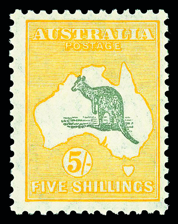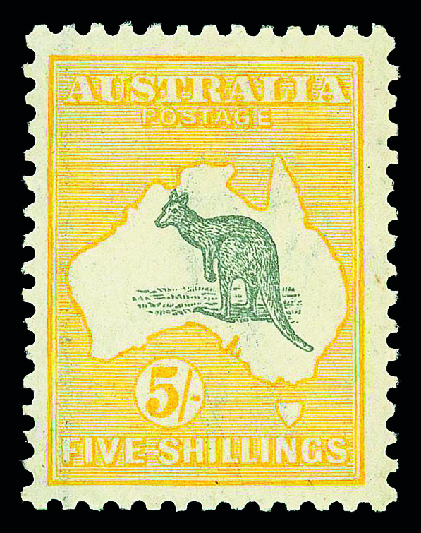 7612 O 12 image1913, Kangaroo and Map, 5s gray & yellow (Scott 12), 1st watermark, single, Very Fine.