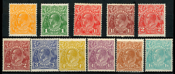 7606 og 10-21 image1924, Badge of the Colony, ½d-3s complete (Scott 10-21), complete set of singles, o.g., lightly hinged or hinge remnant, Fine to Very Fine.