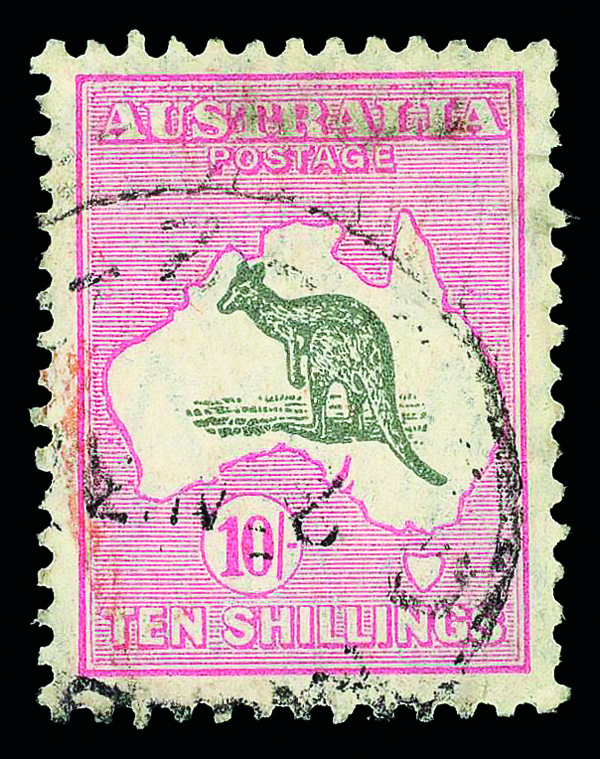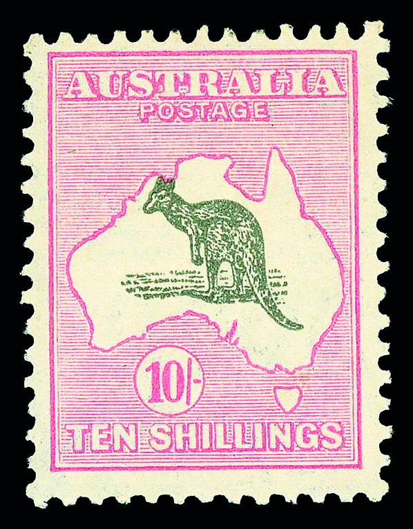 7620 O 101 image1929, Kangaroo and Map, 10s gray & pink (Scott 101), Small Multiple watermark, single, Fine to Very Fine.