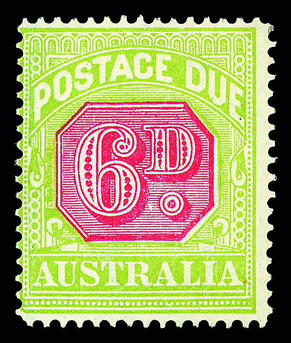 7633 og J62 imagePostage Due, 1936, 6d carmine & yellow green (Scott J62), perf 11, single, o.g., lightly hinged, Fine.