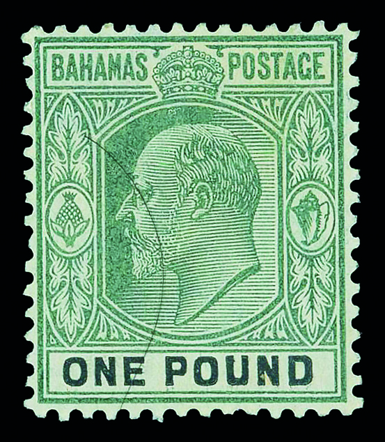 7649 og 43 image1902, King Edward VII, £1 green & black (Scott 43), single, o.g., hinge mark, Fine.