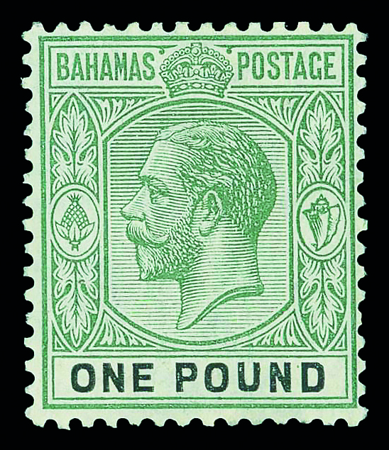 7650 og 56 image1912, King George V, £1 dull green & black (Scott 56), single, o.g., hinge remnant, Fine.