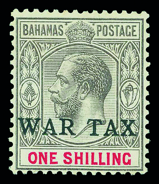 7652 og MR4 image1918, "WAR TAX" on King George V, 1s gray black & carmine (Scott MR4), single, o.g., lightly hinged, Very Fine.