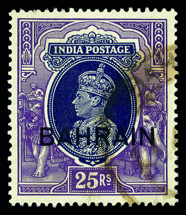 7660 cover C2 imageRegistered Envelope, 1943/46, King George VI, 3a + 1a3p blue (Higgins and Gage C2), Indian envelope overprinted BAHRAIN, exceptionally fresh with a 1 NOV 47 Bahrain favor cancel, Very Fine and rare. As per the H & G catalog (1989), "this item has been reported to but never seen by the editor" and is left unpriced. (Image) (Image2) (All Images)