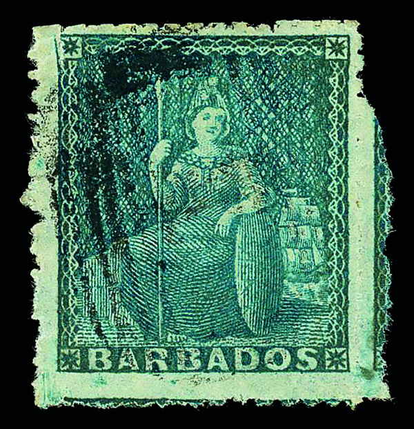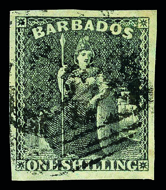 7668 og 9 image1858, "Britannia", 1s black, imperf (Scott 9), single, disturbed o.g., Very Fine.