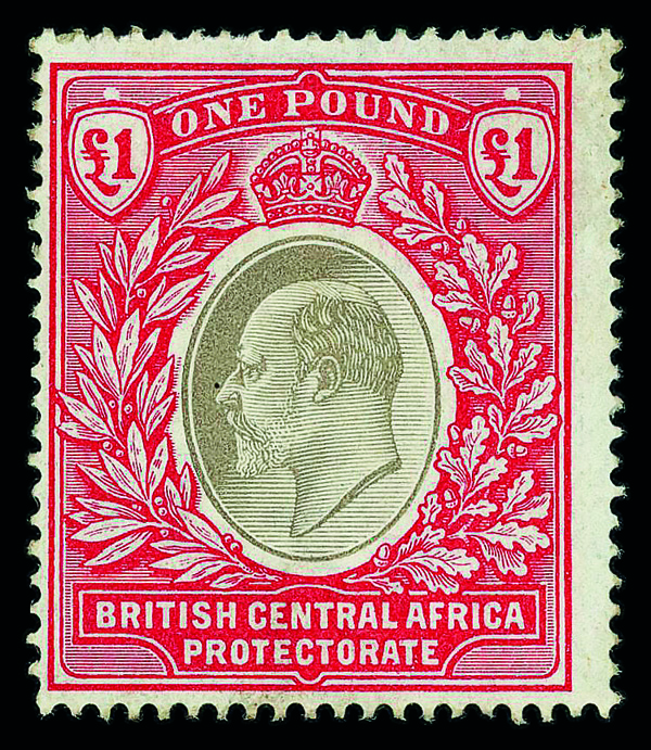 7721 og 55 image1897, Arms of the Protectorate, £1 black & dull purple (Scott 55), single, o.g., hinged (album adherence), Very Fine.