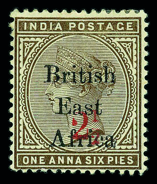 7727 og 59 image1895, 2½ on "British East Africa" on India 1a6p sepia (Scott 59), single, o.g., hinge remnant, Fine to Very Fine.
