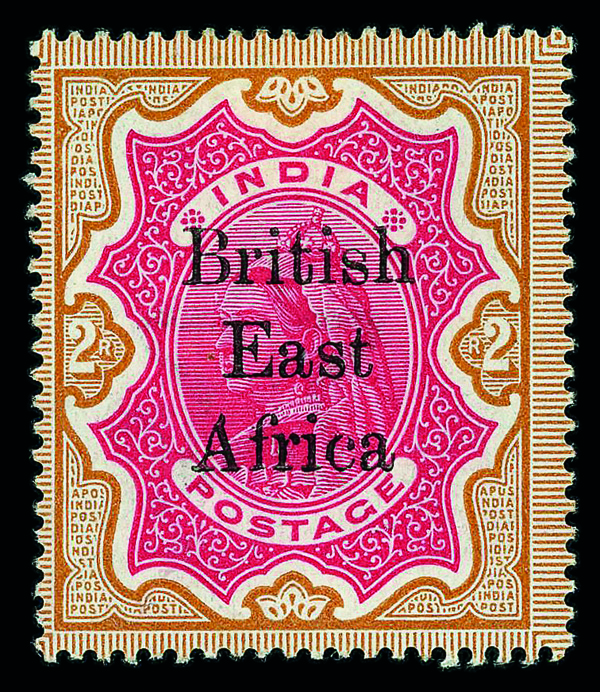 7729 og 68 image1895, "British East Africa" on India 2r carmine & yellow brown (Scott 68), single, o.g., hinge remnant, Fine to Very Fine.
