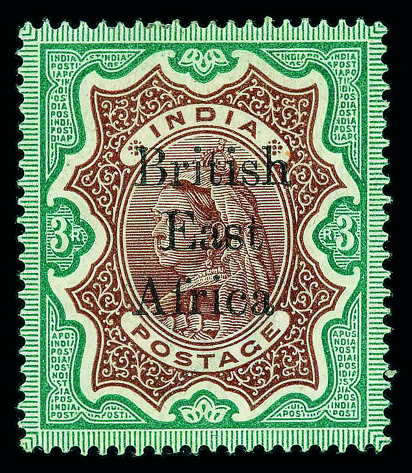 7730 og 69 image1895, "British East Africa" on India 3r brown & green (Scott 69), single, o.g., hinge remnant, Fine to Very Fine.