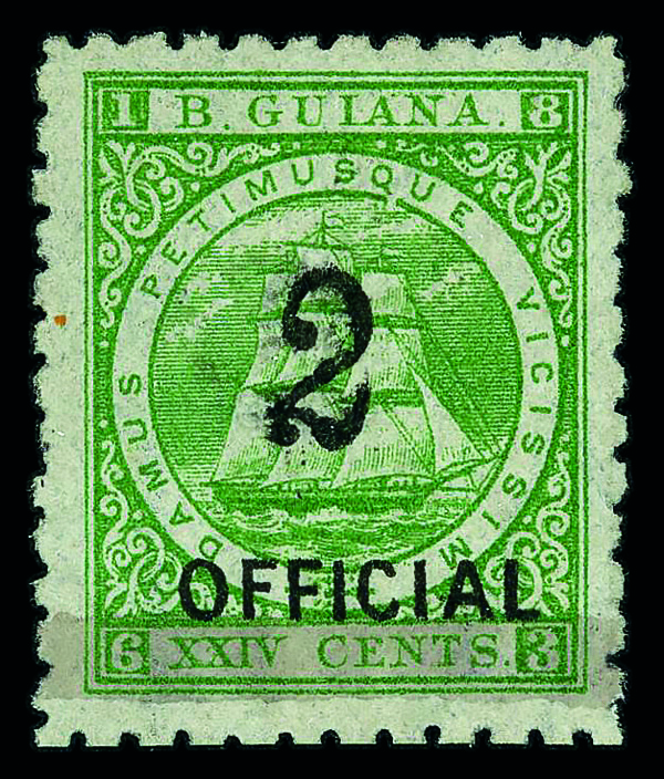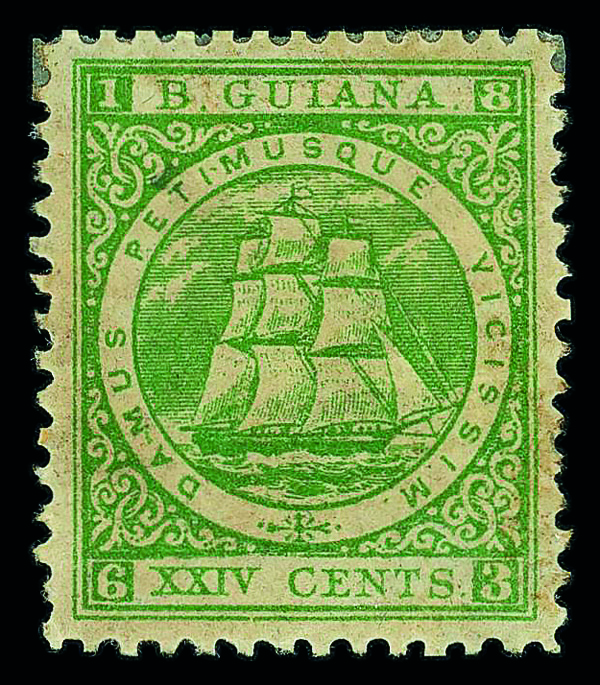 7739 og 63 image1863, Seal of the Colony, 24¢ yellow green, perf 12, medium paper (Scott 63), single, slightly brownish o.g. and hinge remnants; Short perforation lower right side., Fine to Very Fine.